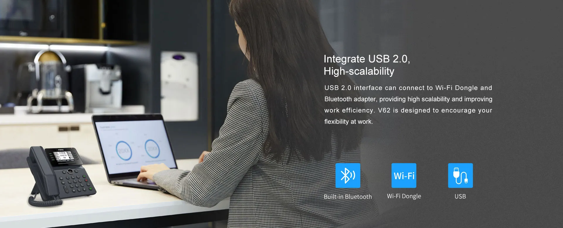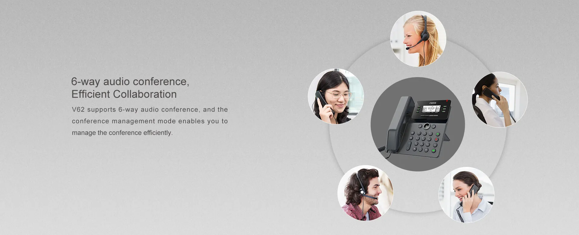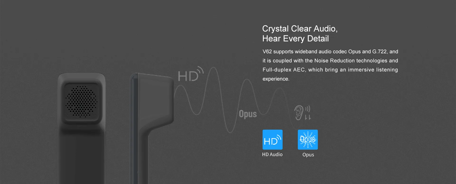 V62 เป็นมากกว่าโทรศัพท์ที่มีประสิทธิภาพ แต่เป็นงานศิลปะที่ละเอียดอ่อน มอบประสบการณ์การสื่อสารทางธุรกิจที่ชาญฉลาดและราบรื่นสำหรับองค์กรต่างๆ ในฐานะที่เป็นโทรศัพท์ธุรกิจที่จำเป็นซึ่งมีหน้าจอดอทเมทริกซ์แบบกราฟิกพร้อมไฟแบ็คไลท์และคุณสมบัติ VoIP ที่จำเป็นและคุณสมบัติเพิ่มเติมอื่นๆ V62 จึงเป็นการผสมผสานที่ยอดเยี่ยมระหว่างภายนอกที่หรูหราและภายในที่ทรงพลัง
