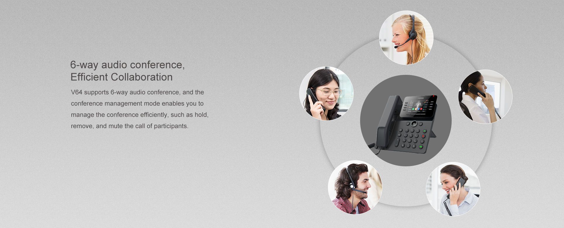 V64 เป็นมากกว่าโทรศัพท์ที่มีประสิทธิภาพ แต่เป็นงานศิลปะที่ละเอียดอ่อน มอบประสบการณ์การสื่อสารทางธุรกิจที่ชาญฉลาดและราบรื่นสำหรับองค์กรต่างๆ ในฐานะที่เป็นโทรศัพท์ธุรกิจชั้นนำที่มีหน้าจอ LCD สี และมี Bluetooth 4.2 และ Wi-Fi 2.4G/5G ในตัว V64 จึงเป็นส่วนผสมที่ลงตัวระหว่างภายนอกที่หรูหราและภายในที่ทรงพลัง