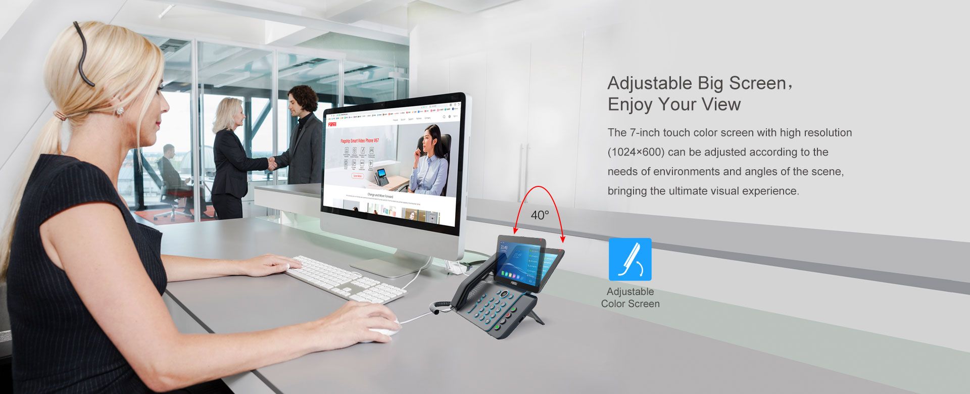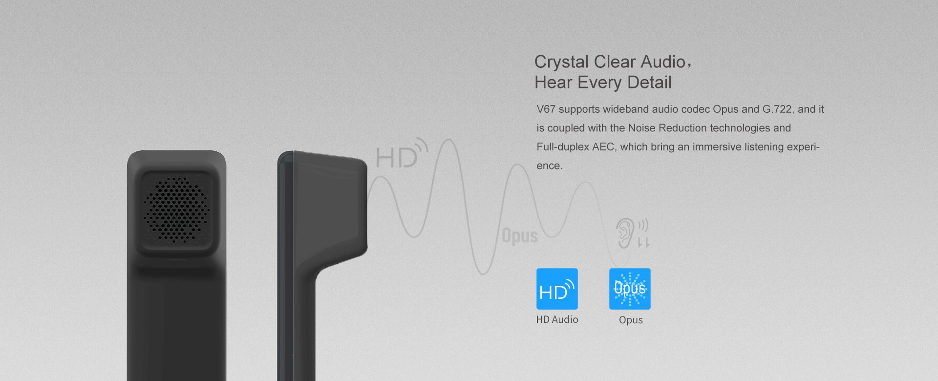 V67 เป็นมากกว่าโทรศัพท์ที่มีประสิทธิภาพ แต่ยังเป็นงานศิลปะที่ละเอียดอ่อน ซึ่งมอบประสบการณ์การดำเนินงานในสำนักงานที่ชาญฉลาดและหรูหรายิ่งขึ้นสำหรับผู้บริหาร ผู้จัดการ และพนักงานทางไกล ด้วยการออกแบบใหม่ล่าสุด V67 มีหน้าจอสัมผัสที่ปรับได้และปุ่มกดพร้อมเอฟเฟกต์แสงหลากสีที่ช่วยปรับปรุงความสวยงามและความสะดวกสบายของเดสก์ท็อปในสำนักงาน