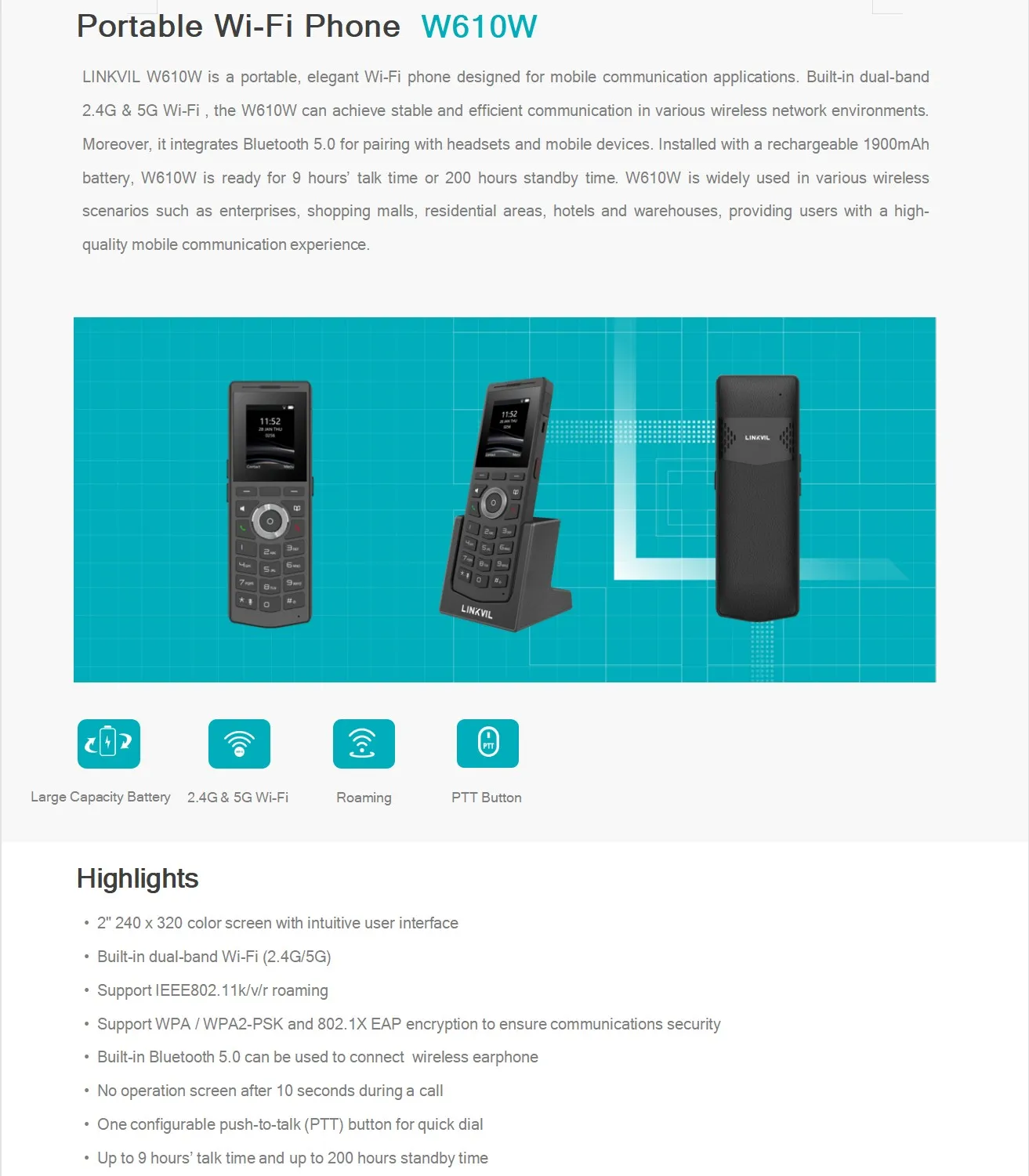 Linkvil W610W Portable WiFi Phone