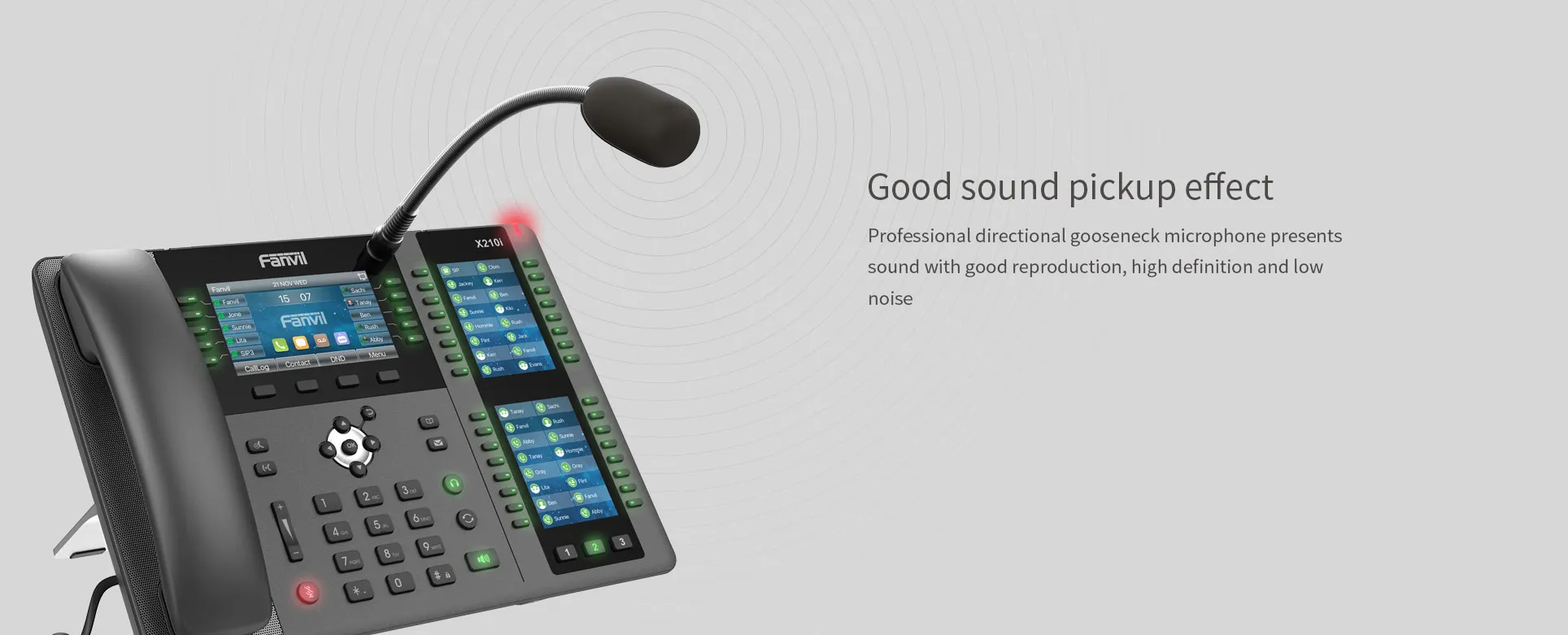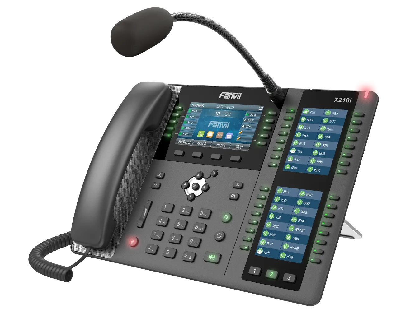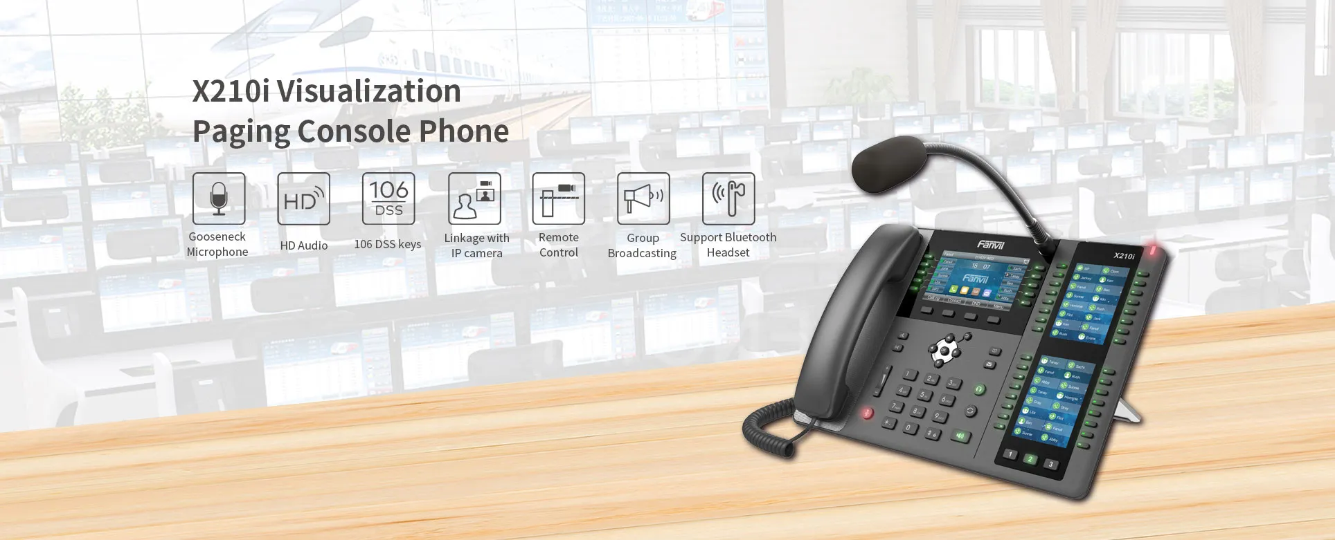 X210i เป็นโทรศัพท์คอนโซลเพจจิ้งสำหรับการแสดงภาพข้อมูลสำหรับลูกค้าอุตสาหกรรม มีไมโครโฟนคอห่านและรองรับการโทรแบบแฮนด์ฟรีแบบ HD ด้วยปุ่ม DSS ที่ตั้งโปรแกรมได้อัจฉริยะ คุณสามารถตั้งค่าฟังก์ชันการโทรเพียงคลิกเดียวเพื่อปรับปรุงประสิทธิภาพการสื่อสาร มันเข้ากันได้กับโปรโตคอล SIP มาตรฐาน และสามารถใช้เป็นศูนย์ตรวจสอบหรือโฮสต์สำหรับผู้จัดการสำนักงานที่มีฟังก์ชันต่างๆ เช่น การโทรออกสำหรับโทรศัพท์ภายนอกและภายใน อินเตอร์คอมแบบสองทาง การตรวจสอบ และการแพร่ภาพ X210i ปรับปรุงประสิทธิภาพการจัดการและความสามารถในการตอบสนองต่อเหตุฉุกเฉิน