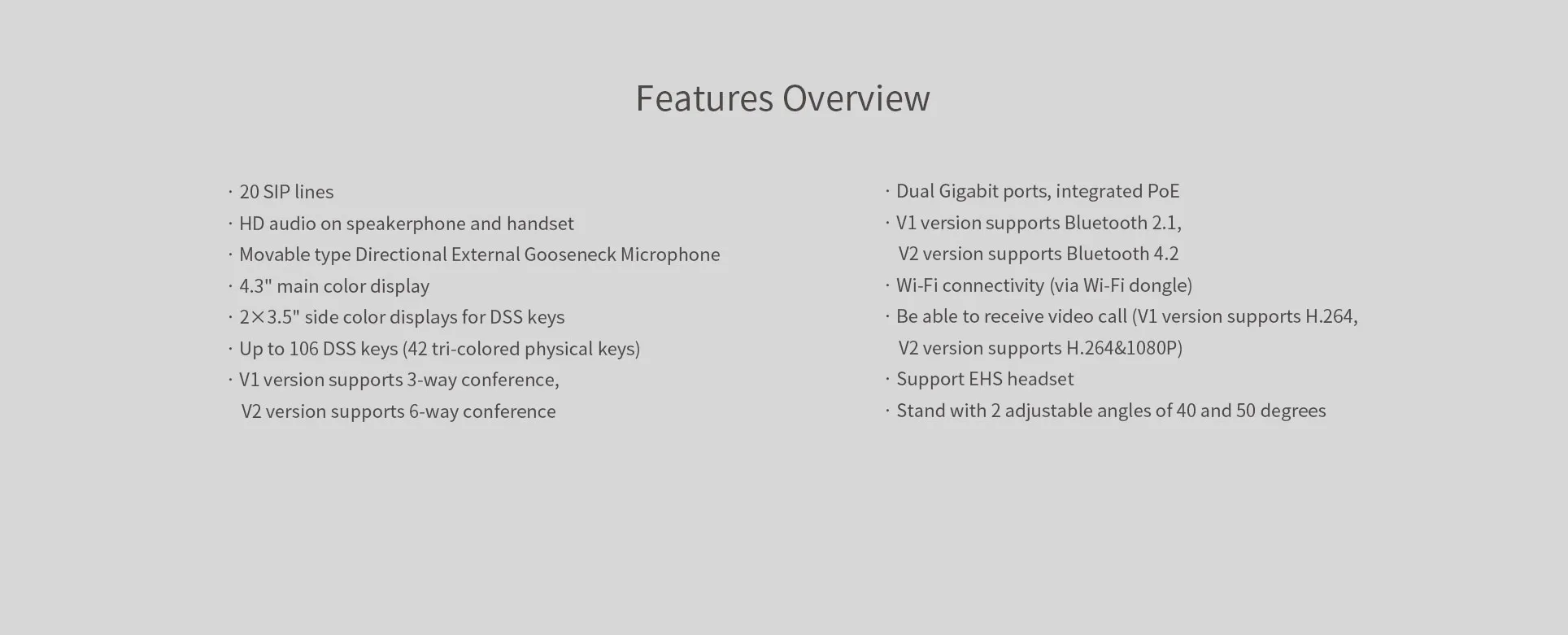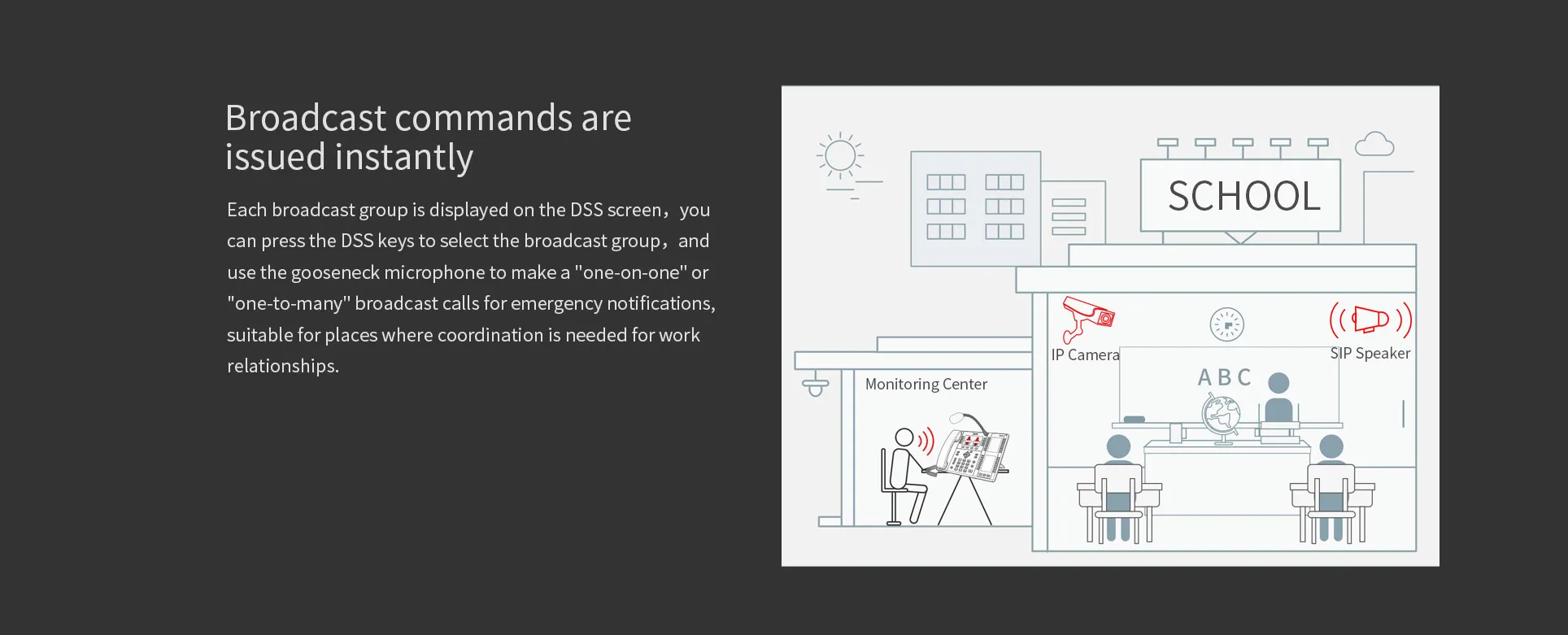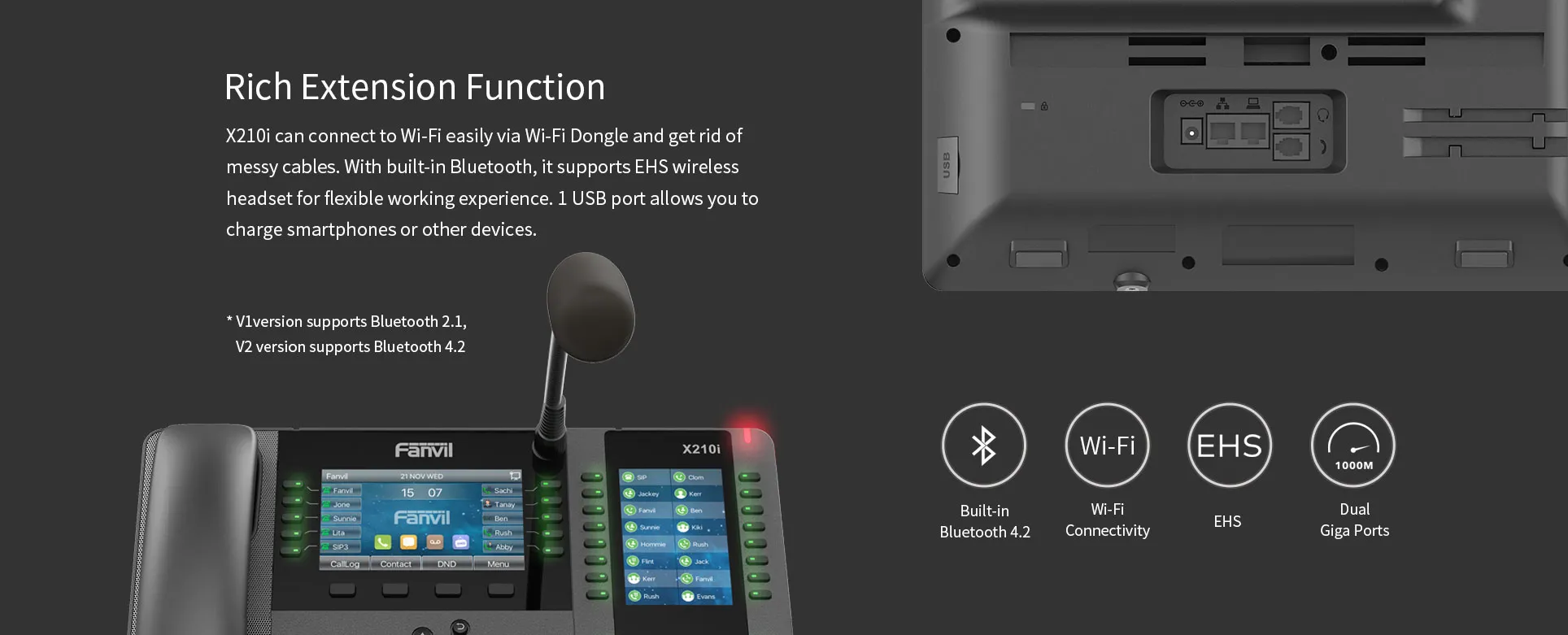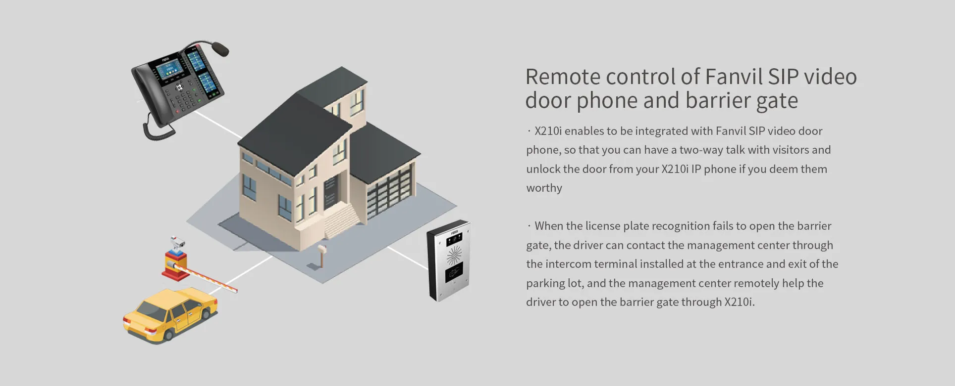 X210i เป็นโทรศัพท์คอนโซลเพจจิ้งสำหรับการแสดงภาพข้อมูลสำหรับลูกค้าอุตสาหกรรม มีไมโครโฟนคอห่านและรองรับการโทรแบบแฮนด์ฟรีแบบ HD ด้วยปุ่ม DSS ที่ตั้งโปรแกรมได้อัจฉริยะ คุณสามารถตั้งค่าฟังก์ชันการโทรเพียงคลิกเดียวเพื่อปรับปรุงประสิทธิภาพการสื่อสาร มันเข้ากันได้กับโปรโตคอล SIP มาตรฐาน และสามารถใช้เป็นศูนย์ตรวจสอบหรือโฮสต์สำหรับผู้จัดการสำนักงานที่มีฟังก์ชันต่างๆ เช่น การโทรออกสำหรับโทรศัพท์ภายนอกและภายใน อินเตอร์คอมแบบสองทาง การตรวจสอบ และการแพร่ภาพ X210i ปรับปรุงประสิทธิภาพการจัดการและความสามารถในการตอบสนองต่อเหตุฉุกเฉิน