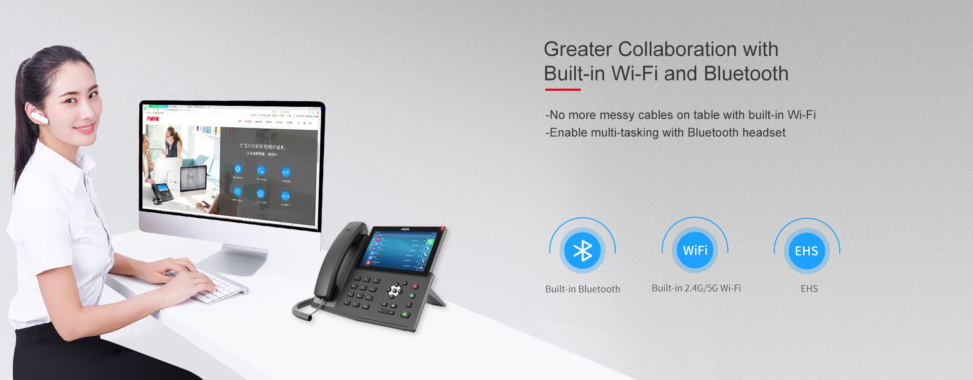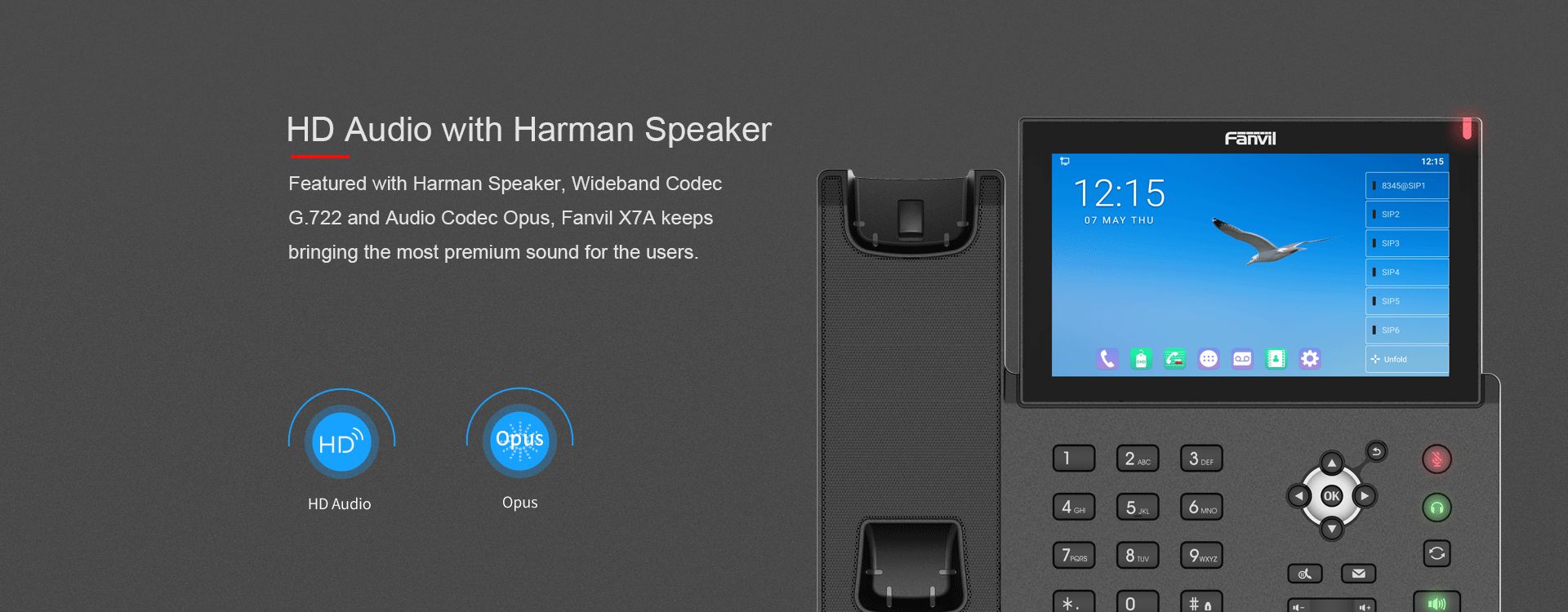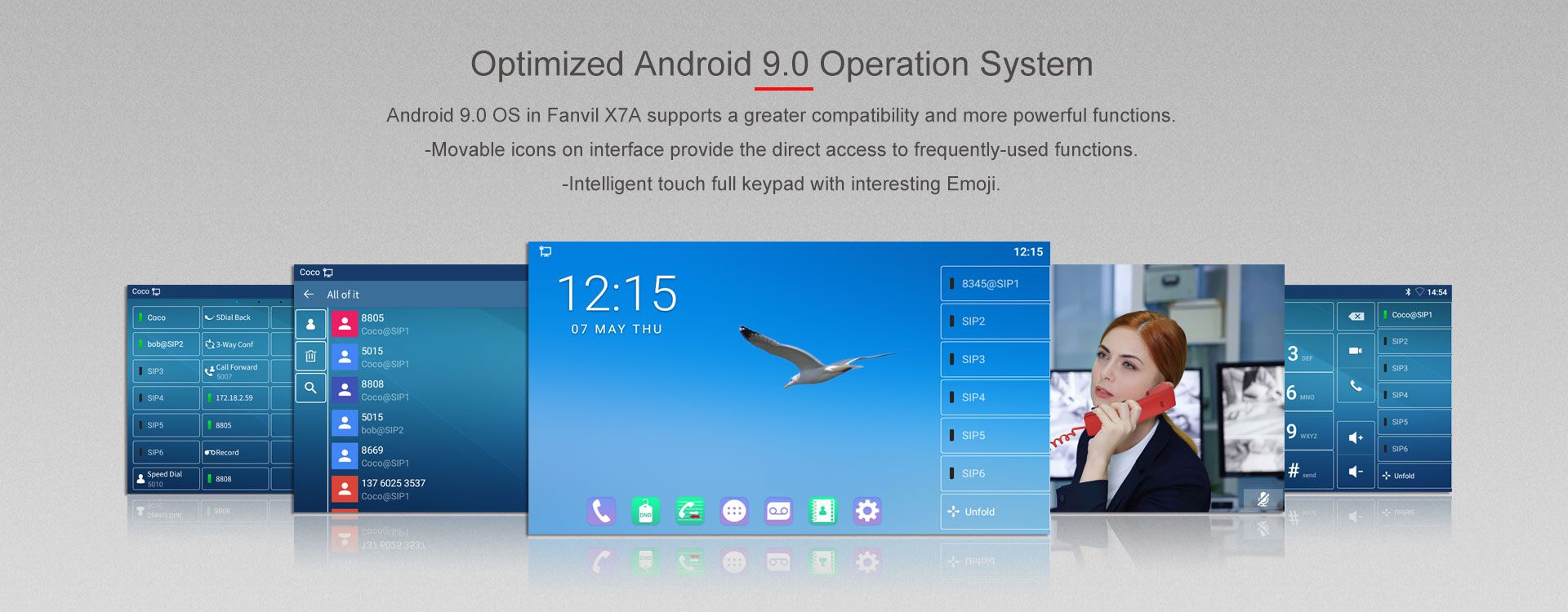 Fanvil X7A เป็นโทรศัพท์ IP สำหรับองค์กรระดับไฮเอนด์ที่มีระบบปฏิบัติการ Android 9.0. Fanvil X7A มอบประสบการณ์การใช้งานระบบสัมผัสที่ชาญฉลาดและราบรื่นยิ่งขึ้นสำหรับผู้ใช้งาน ซึ่งมีปุ่ม DSS 112 ปุ่มบนหน้าจอสัมผัสสีขนาด 7 นิ้ว, Wi-Fi ในตัว, บลูทูธในตัว ทำให้การสื่อสารในแต่ละวันฉลาดขึ้นและง่ายขึ้น Fanvil X7A จับคู่กับกล้อง USB CM60 ที่เป็นอุปกรณ์เสริม สามารถมอบเสียงและวิดีโอที่ยอดเยี่ยมสำหรับการประชุมกลุ่ม